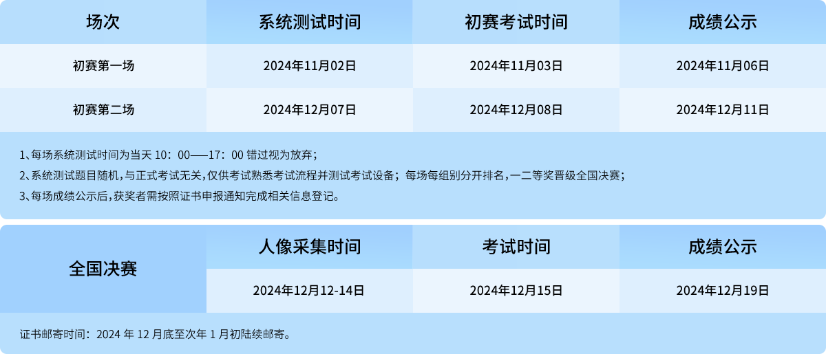 按时参加考前系统测试,预约参赛。
